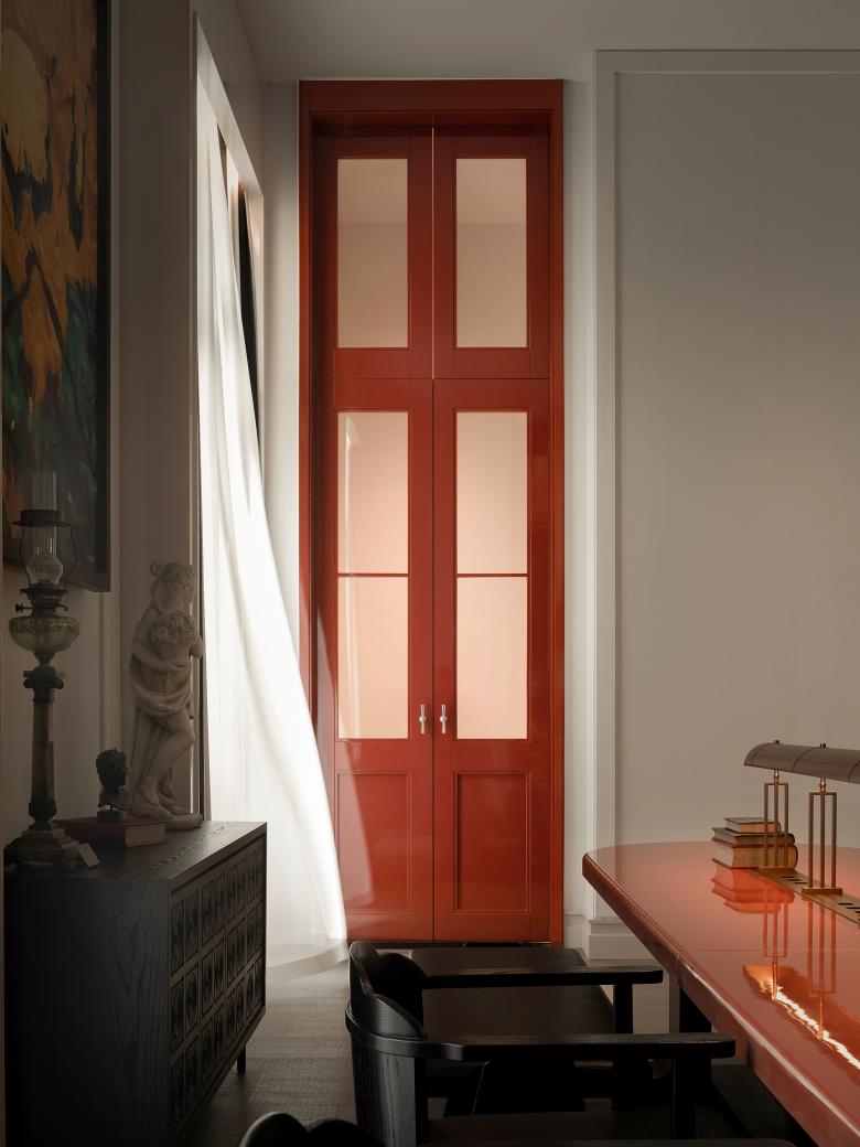 A refined palette of pure white and elegant black sets the tone, evoking sophistication and luxury. Vibrant accents of bright red lacquered panels add a humanistic touch, infusing the space with a feeling of freedom and purity. By simplifying architectural lines and optimizing furnishings details, the design creates a comfortable and pleasant artistic ambiance that transcends time.