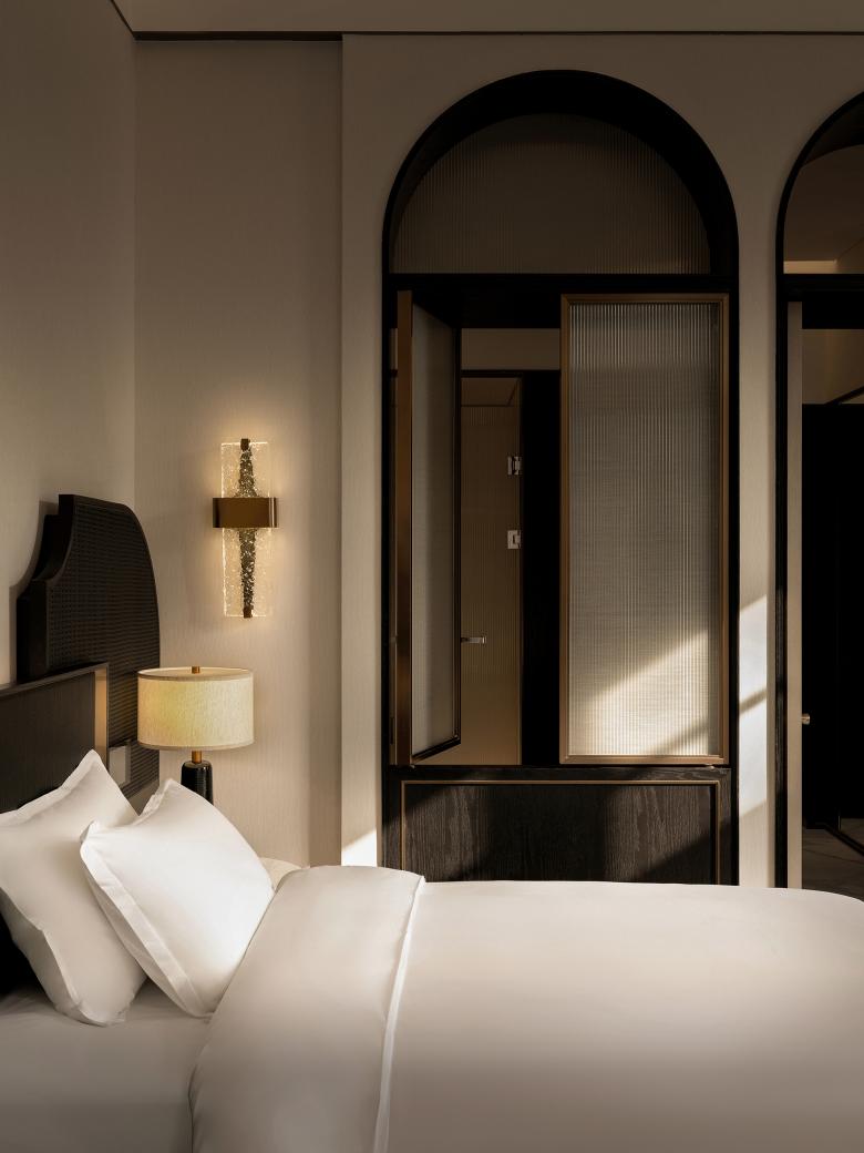 The guest rooms offer a relaxed and inviting home environment, with meticulous details showcasing a refined taste for life. The unique arched ceiling, complemented by a blend of curves and straight lines, maintains the architectural style while highlighting spatial atmosphere.