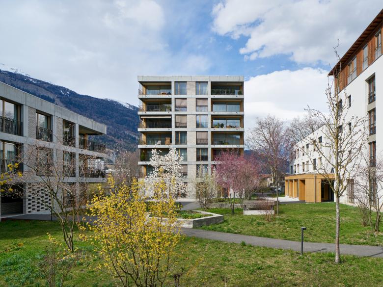 bestehende Gartenanlage angeknüpft wird, um kleine und grössere Spaziergänge zu ermöglichen. Im privaten Bereich der