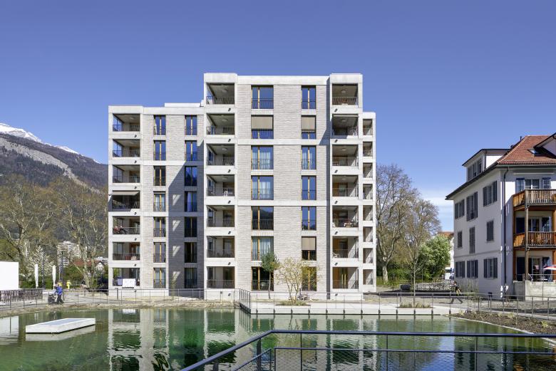 Das bestehende Gebäude des Rigaparks aus den 70-er Jahren wird durch einen siebengeschossigen Neubau plus Attika ersetzt. Das neue, gestaffelte Volumen ergänzt die Gesamtanlage in Anlehnung an die beiden Residenzneubauten im Osten des Seniorenzentrums Rigahaus. Das Gebäude steht an der Gürtelstrasse und stuft sich zum Garten in Richtung Süden.