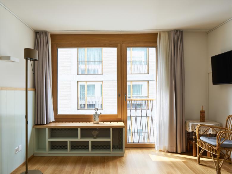 Alle Oberflächen und Schreinerarbeiten sowie Beleuchtung wurden in allen Pflegeabteilungen erneuert. Wo notwendig wurde das Haus statisch ertüchtigt, die Lüftungsanlage und Haustechnik modernisiert und andere Anpassungen gemäss aktuellen Brandschutzvorschriften vorgenommen. Ebenfalls wurden die Fenster und Absturzsicherungen ersetzt.
