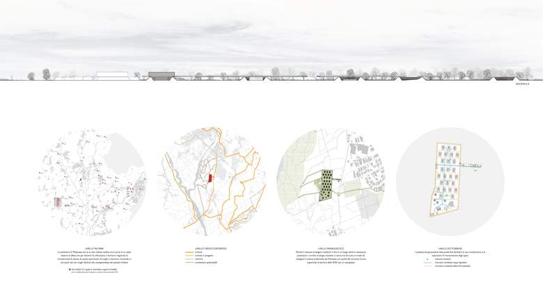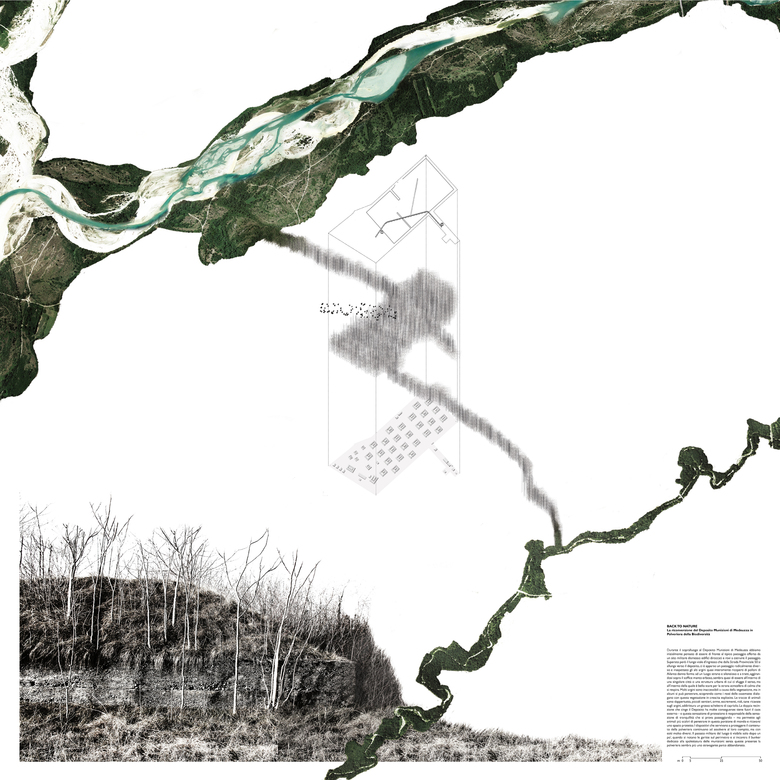 Riproponendo lo schema di protezione esistente della doppia recinzione, due terzi dell'area preserveranno intatta la loro impermeabilità al passaggio, mentre la parte più a sud sarà mantenuta aperta per fruirne liberamente; farà eccezione un lungo percorso sopraelevato che permetterà ai visitatori di osservare dall'alto, in un rapporto il meno possibile invasivo nei confronti del nuovo ecosistema. Per la stessa ragione il percorso si affaccia appena, come un trampolino panoramico, nell'area più a nord, senza però attraversarla: sarà quella infatti la zona di rinaturalizzazione massima, protetta da tutto il resto, con l'obiettivo di raggiungere la più alta biodiversità possibile.