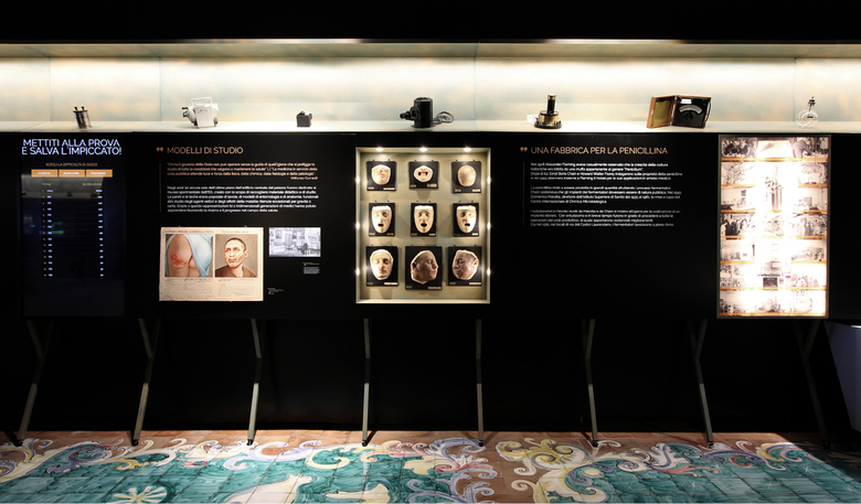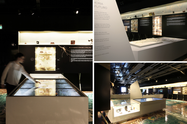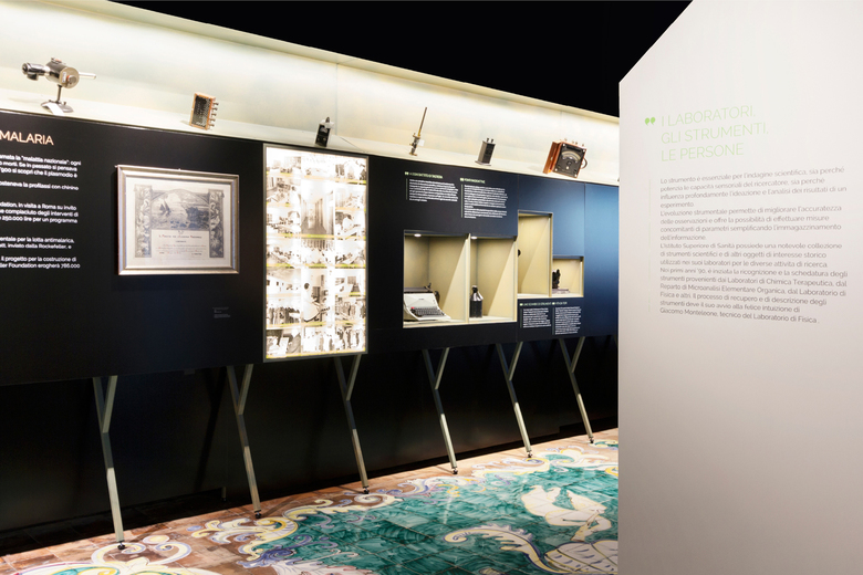 A permanent exhibition inside the Istituto Superiore della Sanità in Rome has been set up to tell its story to the public, through the exhibition of archival materials and the use of highly interactive exhibits: physical objects are implemented by multimedia contents, allowing a deeper interaction with the visitors. High iconic totems scan the narration introducing the different thematic areas of the museum itinerary: they give a voice to the most famous researchers who worked in the Institute and helped to make it famous in the world.