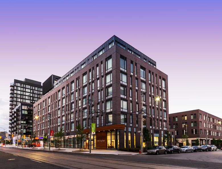 This Toronto Community Housing Corporation affordable housing development comprises a three building complex with 243 family units. The development will provide 128 units designated for seniors and senior-couples. This project is the first development underway in the West Don Lands Development Area.