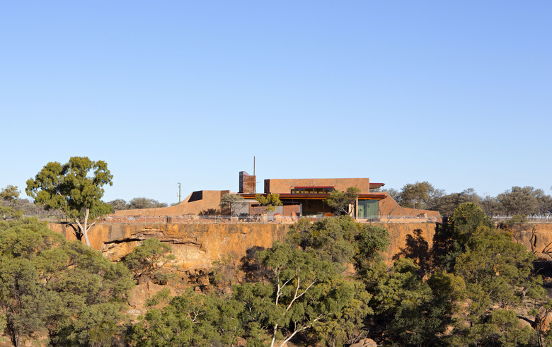 The Australian Age of Dinosaurs Museum is a small project on a mesa in far North West Queensland. It is constructed from a mix of red earth from the site and concrete, and designed to appear as if folded out of the landscape. The project was undertaken pro bono, such was our passion for the objectives of the client, a cattle station owner turned palaeontologist following his discovery of significant dinosaur fossils on his property a decade ago.