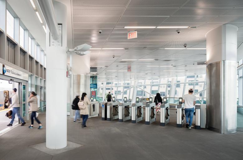 To enhance the customer experience and provide the level of service this growing area needed, PANYNJ commissioned the design and construction of this modern station. The station features best-in-class amenities, glass-enclosed weather-protected station entrances, modern elevators, widened stairs, new escalators, and new platforms—significantly enhancing public access to the elevated railway.