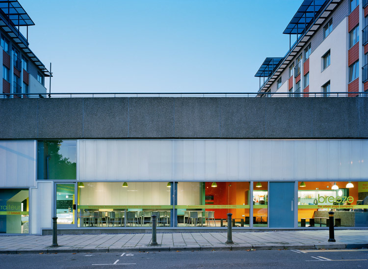 Conversion of a former car workshop to incorporate two yoga studios, treatment rooms, changing facilities, reception and club lounge. The new street facade is formed from a mix of glazed and polycarbonate panels creating a balance of direct and diffused light to the spaces within. A strong colour palette was used to designate the varied spaces within the building.