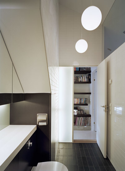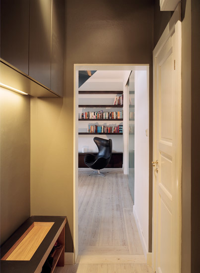 We extended this one room city apartment in Stockholm by breaking through into the generous loft space above to create a family home.