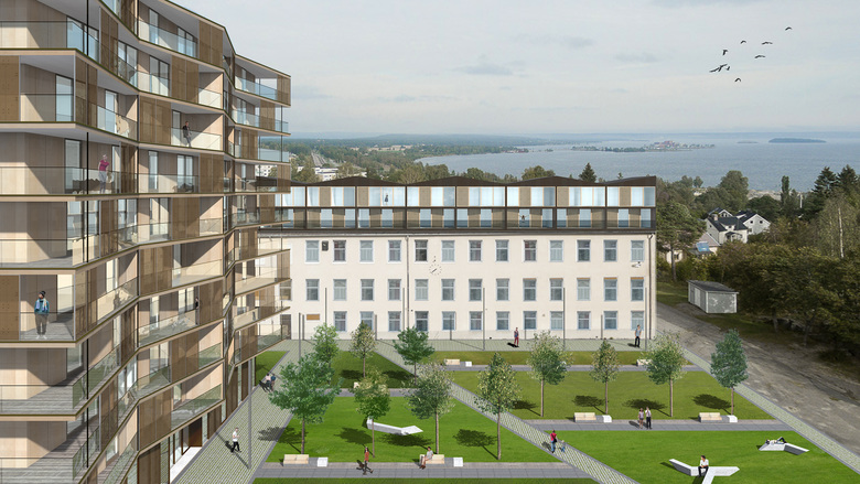 Working from this study we have developed proposals to retain and renovate the old school buildings. Including new extensions at ground level and on the roofs and at the centre the new 10 storey building, combined providing approximately 11 300 sqm of new housing. The proposals were developed in collaboration with BTJ Ecological Development.