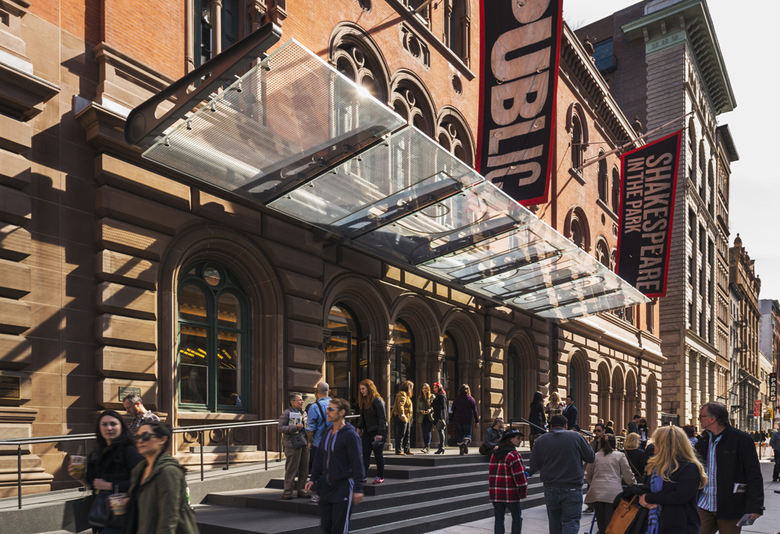 The final phase of Ennead Architects’ ongoing renovation of The Public Theater, the new entry and lobby redesign, completes the revitalization of this groundbreaking New York City institution. The Renaissance Revival building was originally constructed in 1853 as the first Astor Library, a gift of John Jacob Astor to the people of the City. In 1967, Joe Papp saved the building from demolition and re-envisioned it as the home of The Public Theater. Today it houses six distinct performance venues that accommodate a wide range of programming – from classic to contemporary.
