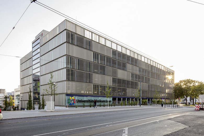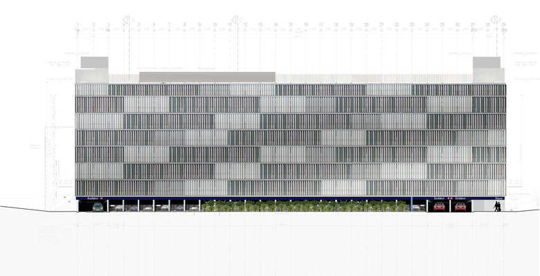 Das Volumen des Parkhauses soll als städtischer Baukörper mit einer maßstäblichen Gliederung in Anlehnung an eine klassische horizontale Gebäudegliederung ausgebildet werden. Hierzu erhält das Parkhaus eine „geschlossene“, stark differenzierte und gegliederte Gebäudehülle. Die Erdgeschosszonen der Längsseiten werden bewusst als Sockelzone abgesetzt und offener gestaltet. Das Erdgeschoss zur Hufelandstraße soll dabei eine „gestaltete“ und „beleuchtete“ Glasfassade erhalten um hierüber einen Beitrag zum urbanen Charakter der Hufelandstraße zu leisten. Das Erdgeschoss zur Klinikumsseite bleibt dagegen offen und erhält nur eine vorgelagerte Grünzone.