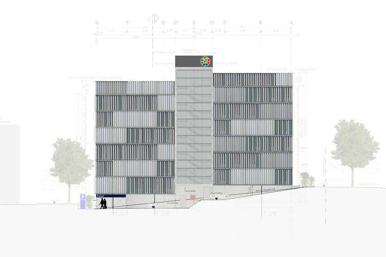 Anlass und Aufgabenstellung – Nach einem vorgeschalteten VOF-Verfahren wurde eine Arbeitsgemeinschaft aus zwei Planungsbüros damit beauftragt ein Parkhaus auf einem unterirdischen Rechenzentrum zu realisieren.