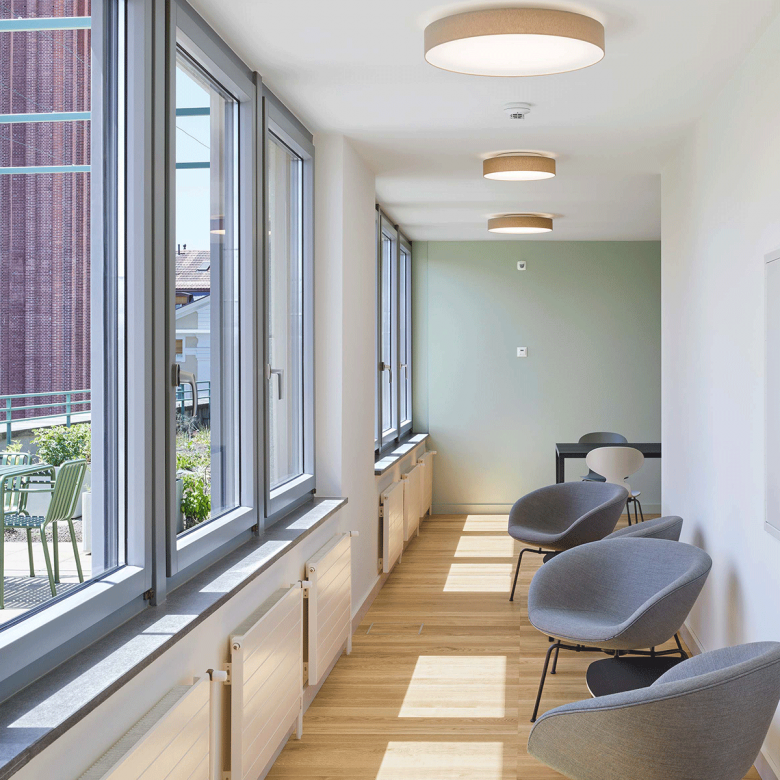Vom Pflegeheim zum smarten Office: nach einem großzügigen Rückbau konnte das vierte Obergeschoss eines ehemaligen Alten- und Pflegeheims optimal an die Bedürfnisse des neuen Mieters angepasst und in eine elegante Bürolandschaft transformiert werden.