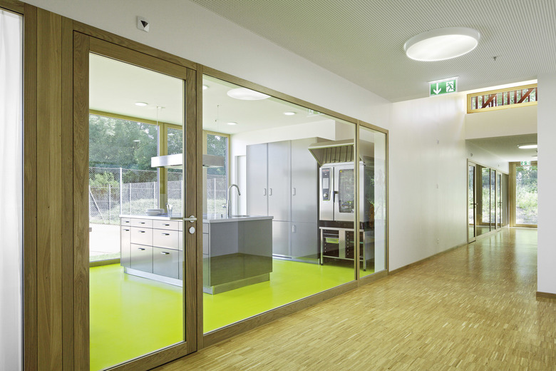 Three protruding, raised main groups of rooms divide up the shell structure horizontally and vertically. A south-facing, circumferential frame is designed as a type of brise soleil and connecting element between the building volumes and the atria. The protected atria provide the groups with a summer room and form a flowing transition between the inside and outside space.