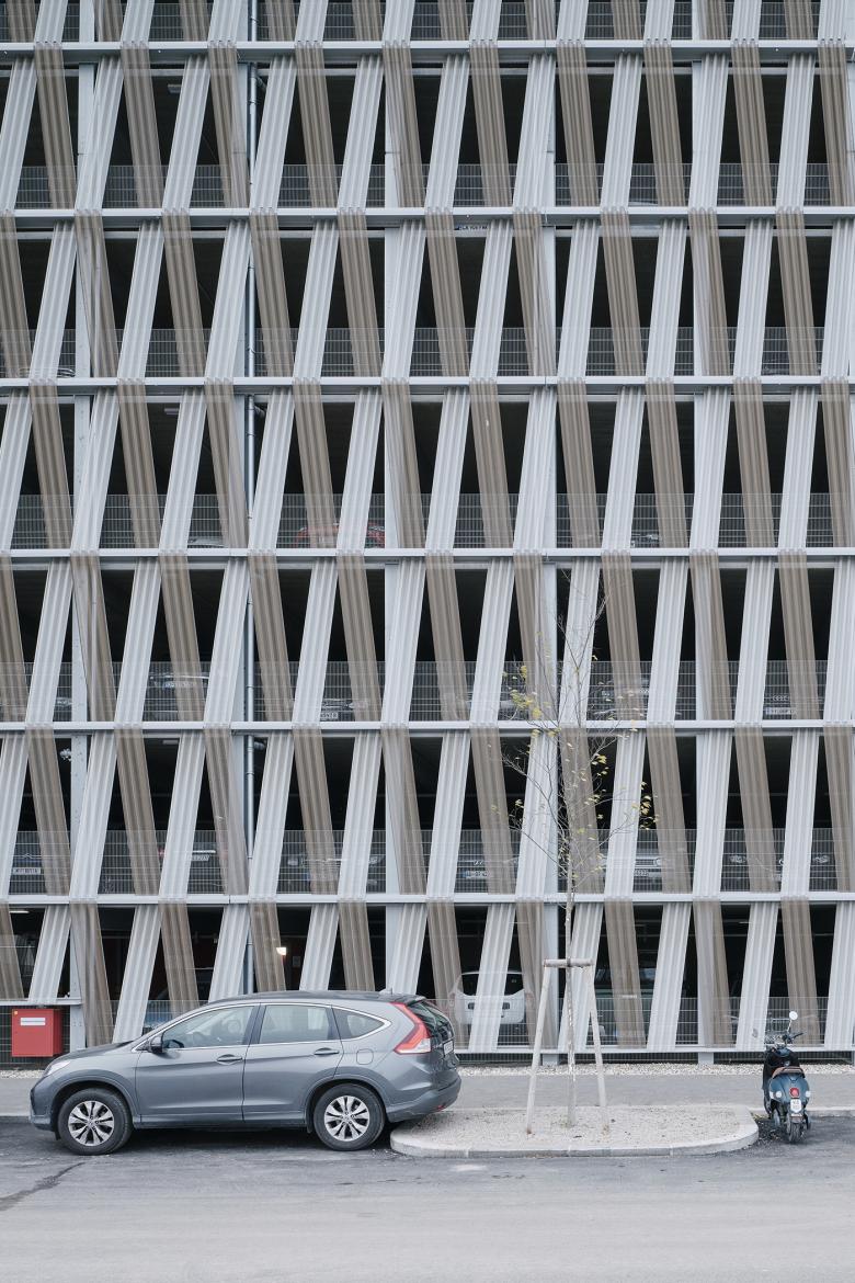 Fassadengestaltung einer Hochgarage im Sonnwendviertel