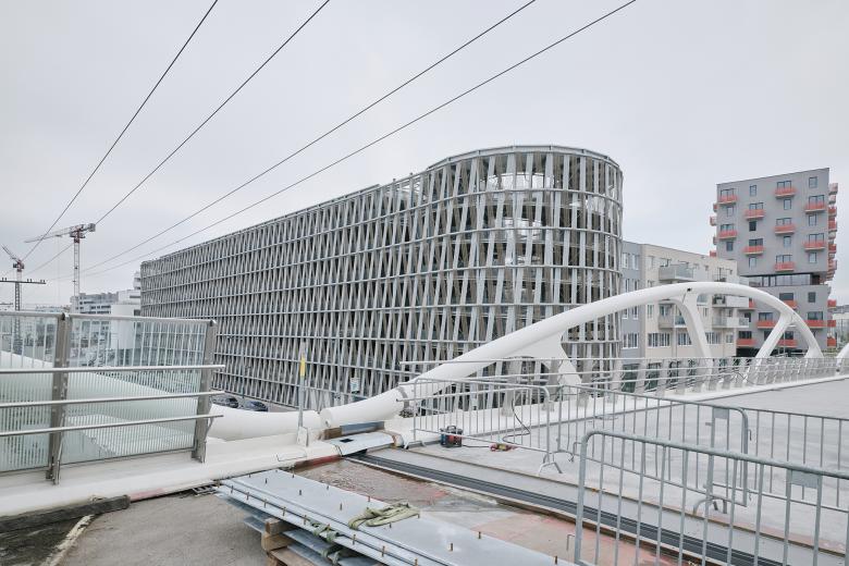 So zeigt die Hochgarage zweierlei Gesichter – Visitenkarte des Sonnwendviertels auf der einen Seite, ästhetische Klammer zur Stadt auf der anderen.