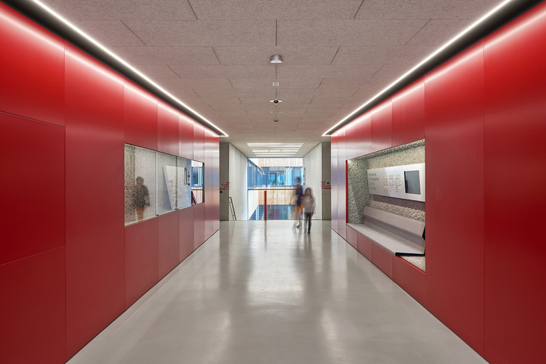 Zwiebelprinzip – Das räumliche Konzept ist einfach und klar. Im Außenring befinden sich nach dem Zwiebelprinzip 7.500m² Depotflächen, dann folgt ein Gang- bzw. Erschließungsring, im Kern gruppieren sich die hellen Arbeits- und Atelierräume für die ca. 35 MitarbeiterInnen um das introvertierte begrünte Atrium, das sich die WissenschaftlerInnen als einen „kontemplativen Denkkreis“ für ihr konzentriertes Forschen und Arbeiten gewünscht hatten.
