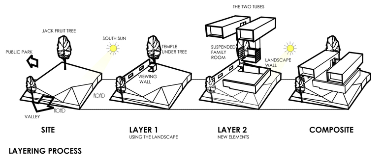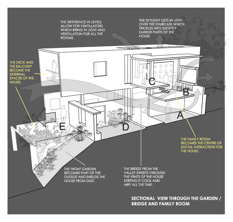 The Ghose house discourses on the independent module of living, which is sought by most urban upper class citizens. It elaborates on the divisions, and the lines between perception and reality.