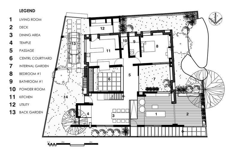 The Ghose Residence sits pretty on a rocky hill, with ‘private’ greenery all reveling in the ‘new urban home’; one which opens up to recoil, welcomes to fend off, and builds to sustain. The dichotomy of our escapist urban premise is not lost on it.