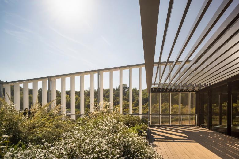 The morphology of the land is truly taken into consideration and is enhanced through the three fundamental elements – the driveway, the terraces and Piazza Furla – which define clear areas around the building volumes. Nature crosses the boundaries between inside and outside thanks to a system of patios and green roofs overlooking the wooded area.