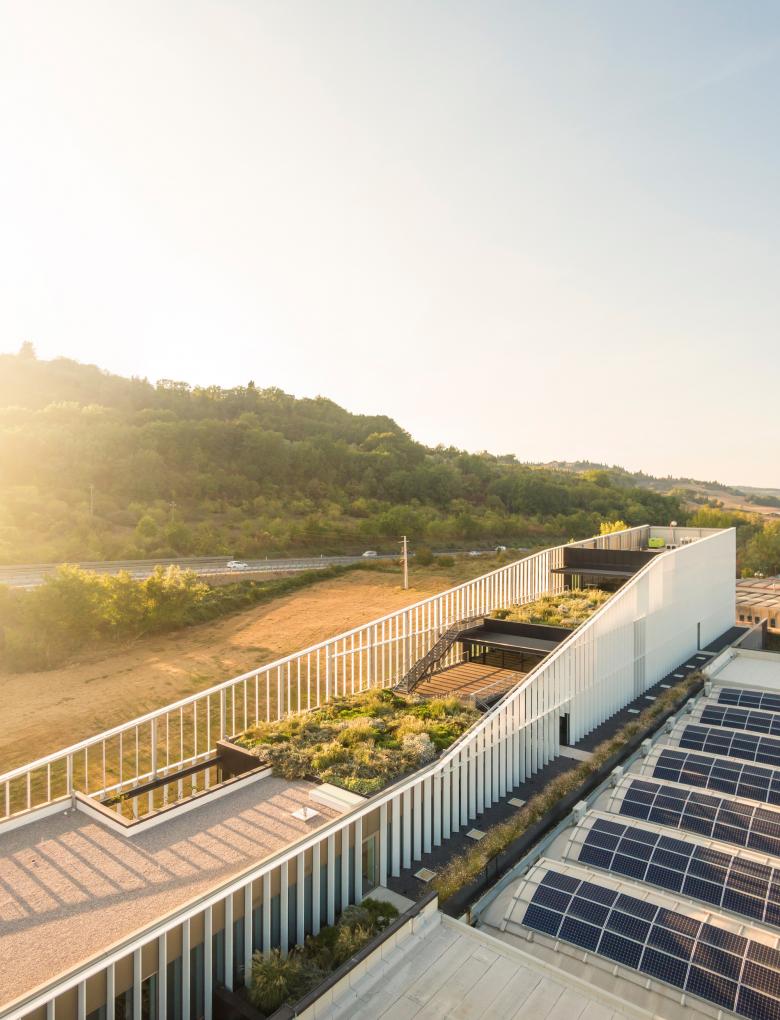 Sustainability plays a key role in this project which has been designed to comply to the green energy best practices: a photovoltaic system is installed over the production building while thermal solar panels guarantee hot water supply (for both sanitary and heating purposes). Additionally, the lighting system is LED-based and renewable energy is always used when possible.