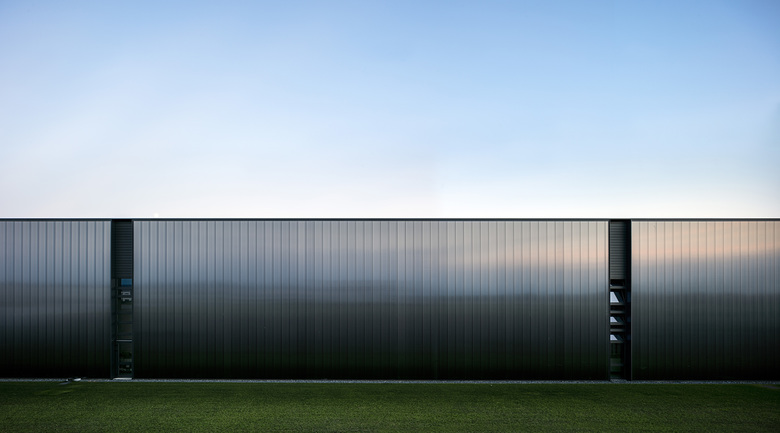 The first lot of Pratic, black and grainy, seemed to arise from the ground, rooting the building in place; the second lot, always black but reflective and iridescent, mirrors the landscape and the light with images that are always different due to atmospheric variability. The first one is "heavy" and permanent, in search of eternity, the second one "light" and changeable, ready to dissolve in the sky: the building completed the molt of its skin.