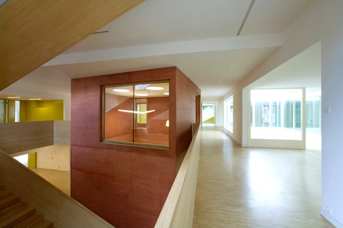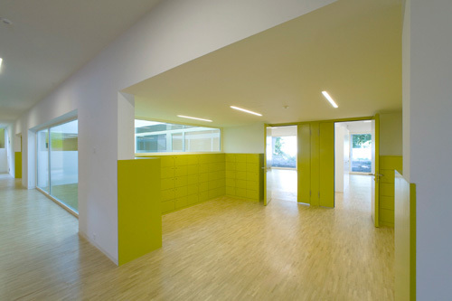 A l’intérieur de la crèche une grande attention a été portée aux regards des enfants entre eux, aux vues de bas en haut et de haut en bas et en travers. Un jeu de couleurs permet d’identifier les différents secteurs et contribue à accentuer la diversité spatiale et à egayer l’ensemble.