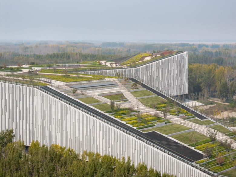 At the heart of the Yellow River National Cultural Park, the new museum rises from the rolling riverside landscape in a streamlined form, connecting the surrounding green spaces into a cohesive whole.