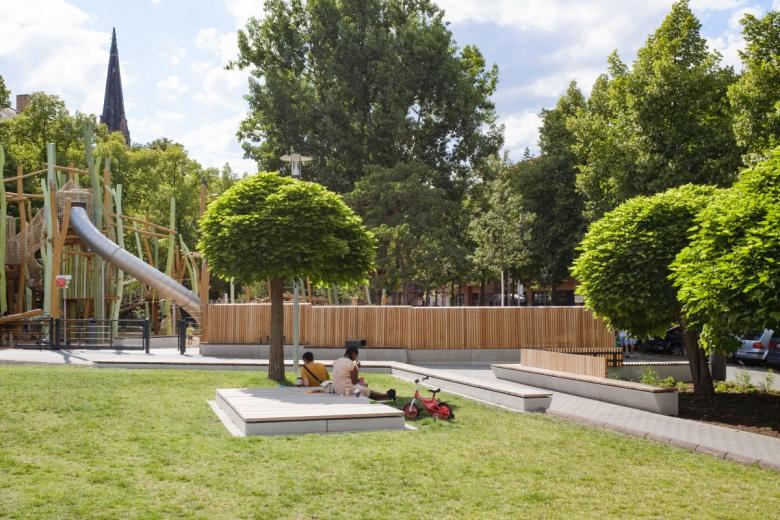 Im Herz der Neckarstadt-West, Mannheims heterogenstem Stadtbezirk, liegt gerahmt von gründerzeitlichen Fassaden der Neumarkt. Rund 22.000 Anwohner:innen aus insgesamt 160 Nationen stehen für ein aufgeschlossenes, tolerantes und lebendiges, aber aufgrund unterschiedlichster Interessen auch herausforderndes Zusammenleben in dem dichtbebauten Stadtteil. Die Aufgabe war es mitten im Quartier einen zusammenhängenden, großzügigen Freiraum zu schaffen, ein „grünes Wohnzimmer“ mit viel Potential für Anwohner, Kinder und Besucher.
