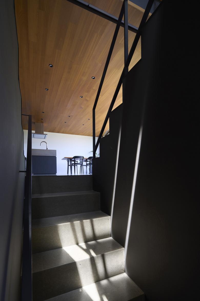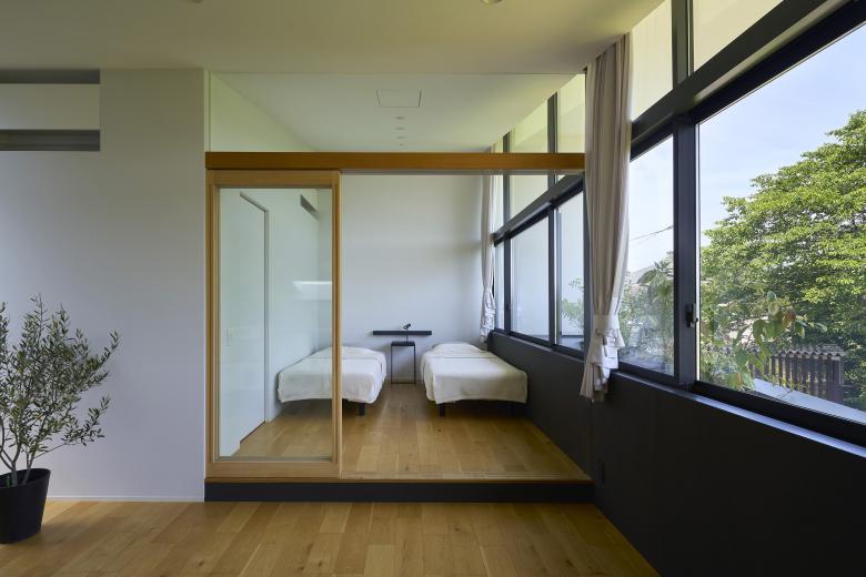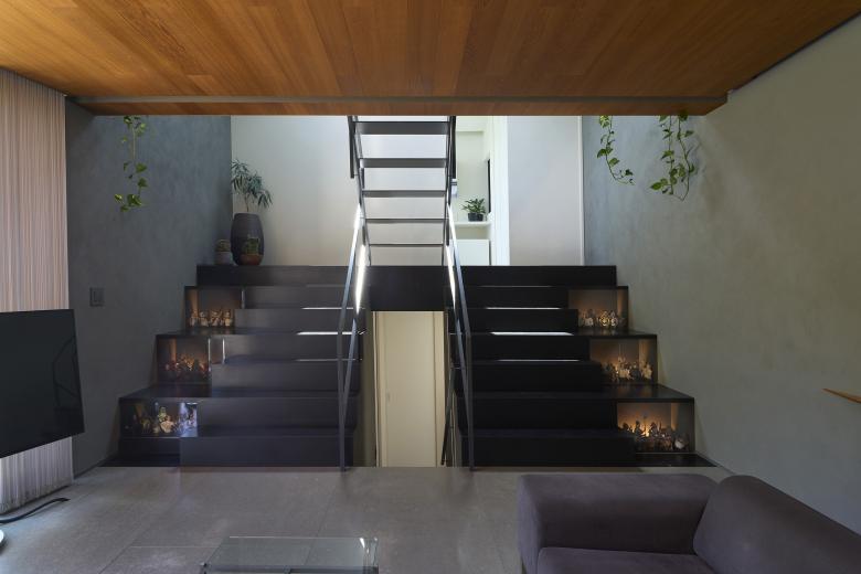 The site originally had a 1.5-meter difference in elevation in the center, so four floors were shifted by half a story to create a skip-floor cross-section, creating a gradual connection between rooms. In addition, skylights were placed on the stairs connecting the floors to ensure stable light and ventilation through the upper and lower floors.
