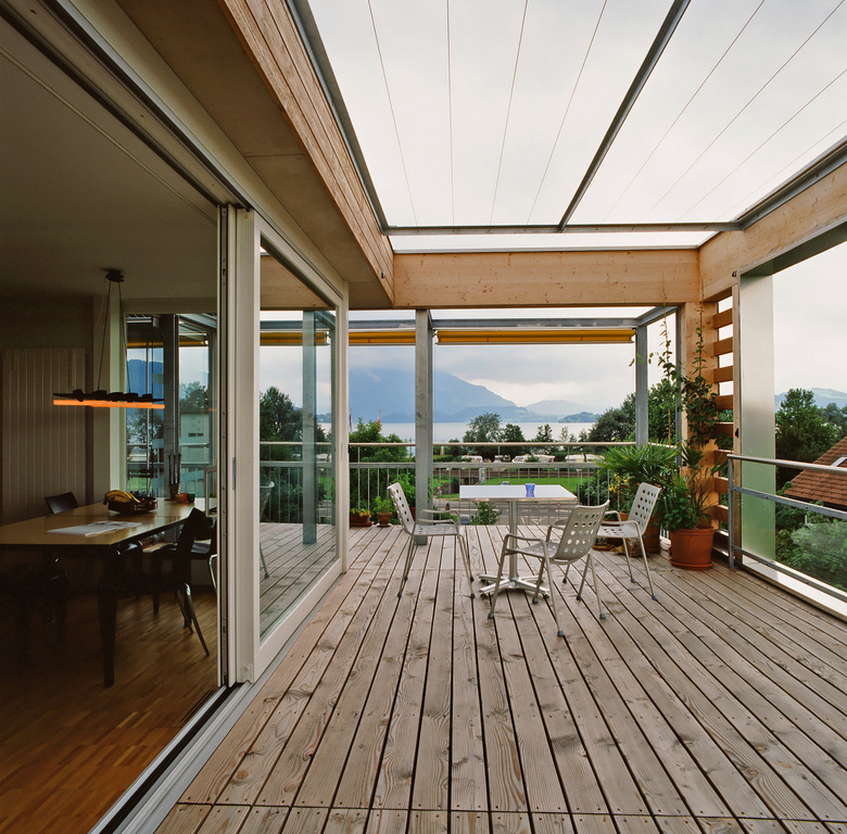 In der Lorzenebene in Zug steht ein ruhiger, ausdruckstarker Holzquader. Es ist das erste, aus Holz erstellte 4-geschossige Mehrfamilienhaus im Kanton Zug. Durch Minergiestandard, Sonnenkollektoren und Ausrichtung gegen Süden wird Energie und Wohnqualität gewonnen. Die Wohnungen profitieren allesamt von einer Ausrichtung gegen Süden, See und Berg. Die Wohnungen lassen sich zudem von 3½ auf 4½ oder 5½ Zimmereinheiten umwandeln. Begegnungen finden über die südseitige Erschliessung statt, welche direkt in den vorgelagerten Spielhof münden.