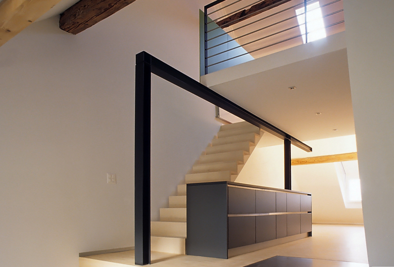 Das Altstadthaus sollte in zwei übereinanderliegende Wohnungen unterteilt werden. Durch die Hausbreite von nur vier Metern mussten Einbauten wie Treppen, Küchen und Galerien in der Hausmitte platziert werden. Das Freilegen und angemessen Inszenieren dieser Elemente vermag sie auch visuell in den Mittelpunkt zu rücken. Durch eine Bohrung in der Altstadtgasse konnte die erste Erdsondenheizung der Altstadt Bremgarten realisiert werden.