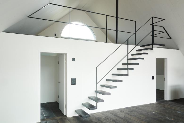 Im nahen Umfeld der Kapelle und des Zehntenhauses im Ortskern Uezwils wurde eine alte Remise unter Wahrung der überlieferten Typologie neu interpretiert und in zeitgenössischer Architektursprache in ein Wohnhaus mit integrierter Schlosserei umgebaut.