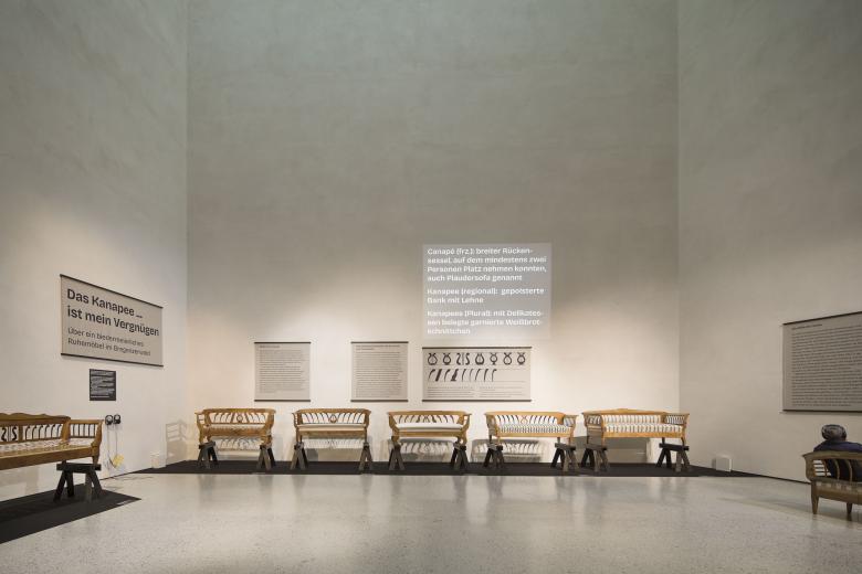 The idea for the exhibition came up many years ago when Johannes Mohr told us about his many restored canapés from the Bregenzerwald, all of which were dated between 1820 and 1840. The vorarlberg museum was enthusiastic about the subject of Biedermeier sofas and put on what everyone said was a successful exhibition in the atrium, a freely accessible area on the ground floor of the museum.