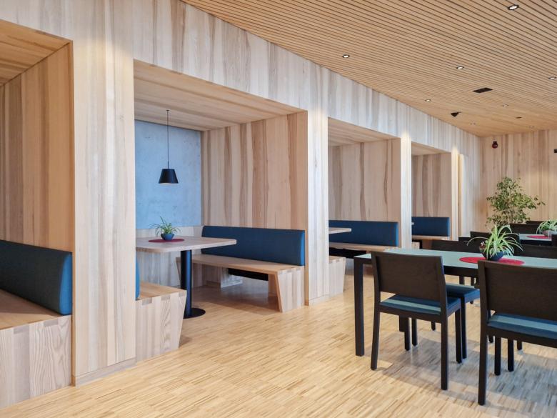 Das traditionsreiche Haus der Barmherzigen Schwestern Zams wurde von 2020 bis 2024 umfassend modernisiert und teilweise neu gebaut. Dabei lag der strategische Fokus auf der Förderung eines selbstbestimmten Alltags der Heimbewohner sowie der Anpassung der Ausstattung an moderne Pflegestandards. Der Einsatz ressourcenschonender Baumaterialien und die präzise durchdachte Planung setzten Maßstäbe in Bezug auf Nachhaltigkeit, Prozessoptimierung und Effizienz, wobei die Bauarbeiten bei laufendem Vollbetrieb das Planungsteam vor besondere Herausforderungen stellten. Ein zentrales Element des Projekts bildete die innovative Holzmodulbauweise, die gemeinsam mit der Zimmerei Kaufmann aus dem Bregenzerwald entwickelt und umgesetzt wurde.~