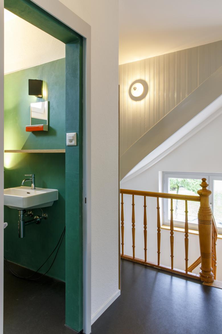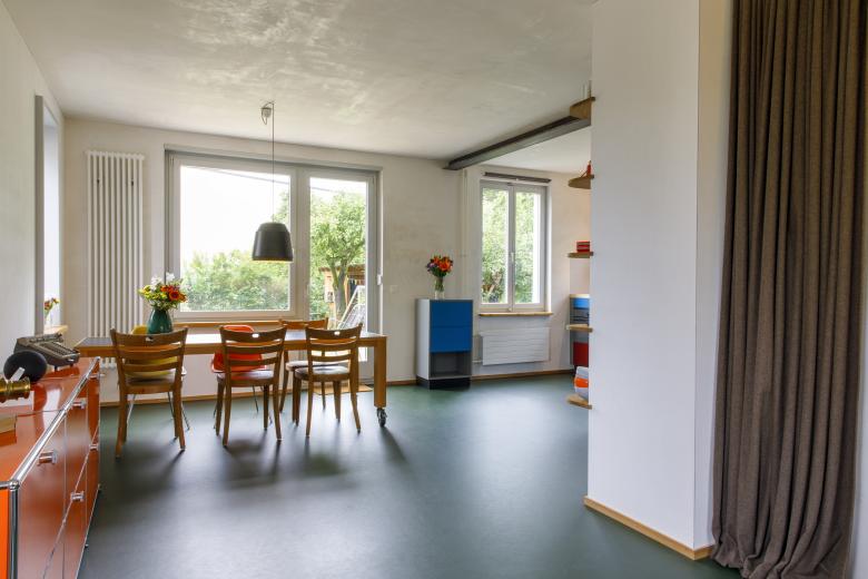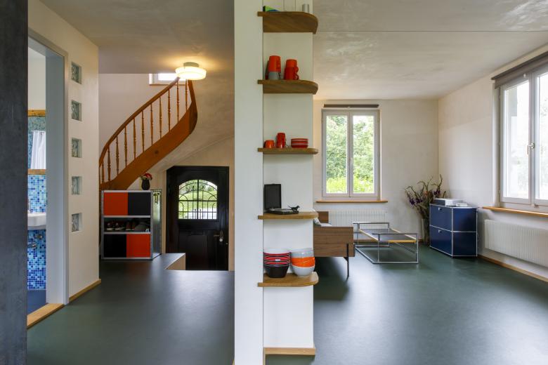 Das Einfamilienhauses mit Baujahr 1910 hat im Zusammenhang mit den Grundrissanpassungen eine grundlegende energetische Sanierung erfahren. Der Haupteingriff wurde im Erdgeschoss vorgenommen: Durch das Einfügen eines Stahlträgers konnte das ganze Geschoss geöffnet werden und wird neu als grosszügiger Wohnbereich genutzt. Dank flexiblen Unterteilungsmöglichkeiten kann ein Teilbereich auch als Gästezimmer bewohnt werden. Durch neue Fenster wird der Sichtbezug zum Garten gestärkt und die Wohnqualität erhöht. Als Erweiterung des Wohnbereiches erstreckt sich die neue Holzterrasse in den Aussenraum und führt über die breit angelegte Treppe in den Garten.