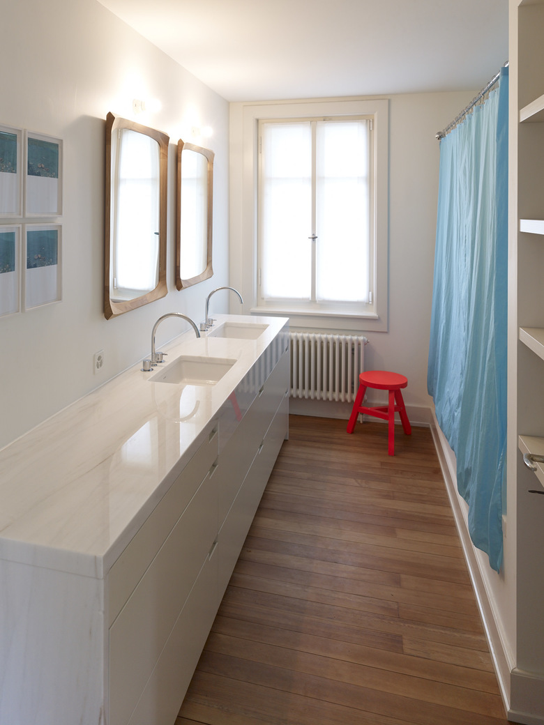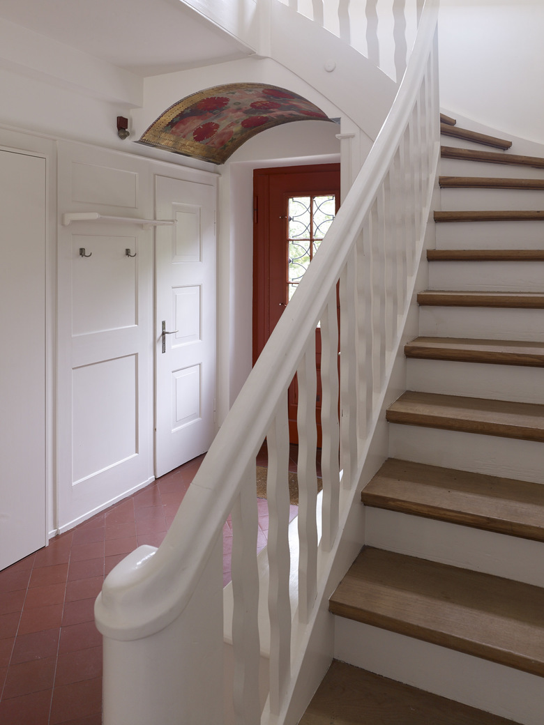 Das Haus an der Eleonorenstrasse gehört zu einer Häusergruppe, die nach der Jahrhundertwende als Wohnsitz für Professoren der nahegelegenen Universität erstellt wurde. Erhard Gull, Sohn von Gustav Gull und Architekt des Museums Bellerive arrangierte die Häuser nach Vorbild der englischen Gartenstadt in einem locker und durchgrüntem Ensemble aus zweigeschossigen Doppel- und Dreifachhäusern. Das Haus wird über das Treppenhaus betreten, das den Blick bis unter das Dach freigibt und von welchem sämtliche Räume erschlossen sind. In der ursprünglichen Disposition sind auf beiden Wohngeschossen den zwei gartenseitigen Haupträumen zwei separate kleinere Nebenräume angegliedert. Das Umbauprojekt verbindet die Räume im Erdgeschoss zu einer offenen Abfolge von Wohnküche, Salon und Wohnzimmer, wobei die ursprüngliche Typologie erhalten bleibt und jeder Raum seine eigene Stimmung entfalten kann.