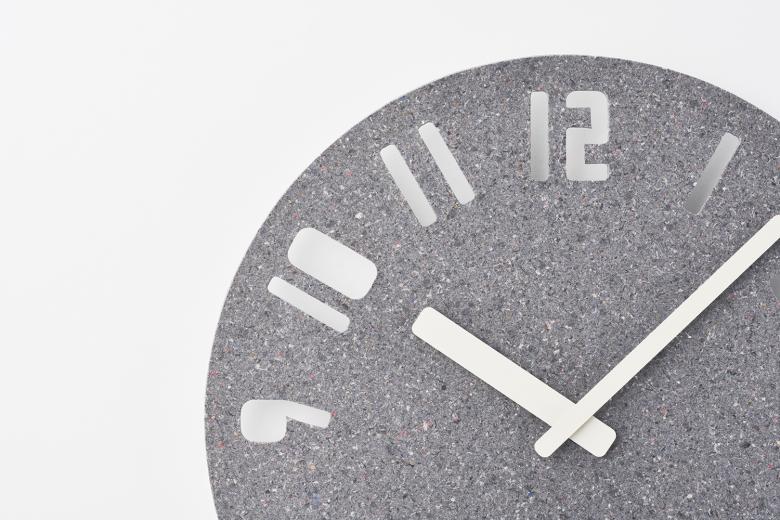 The “PANECO CLOCK” uses a sustainable, recycled fiber board made from waste clothing as part of closed-loop recycling. This wall clock is reusable and recyclable. Boards made from waste clothing show subtle differences in their color and pattern, which means no two are the same. Clocks that are no longer used are also collected and recycled as materials to be reborn as new clocks.