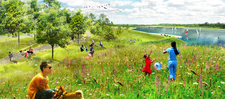 “Twelve Landscapes” addresses the diversity and richness of the different areas of the site, the varied user group demands, and the definition of future management zones.  At the center of the Park is a magnificent new lake, supporting fish habitat and wide range of non-motorized water sport activities.