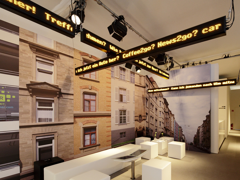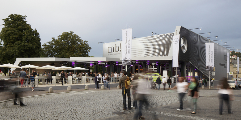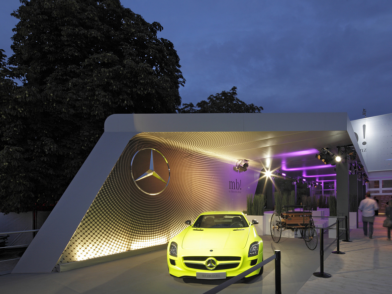 To celebrate the 125th anniversary of the invention of the automobile, Mercedes-Benz hosted numerous events in the heart of Stuttgart as part of Automobile Summer 2011. The centrepiece of the Stuttgarter Sternstunden celebrations was the 1,500 m² mb! Lounge, which presented a dazzling array of new concepts and futuristic design ideas and provided an insight into the upcoming Mercedes-Benz brand worlds. By day, the lounge acted as an exhibition space and discussion forum, but at night it became a venue for talks about burgeoning trends, as well as presentations and parties.