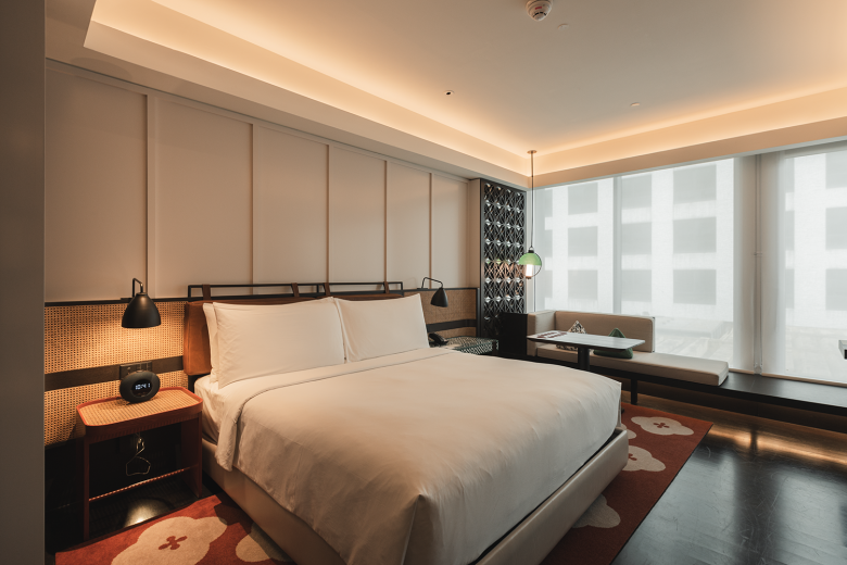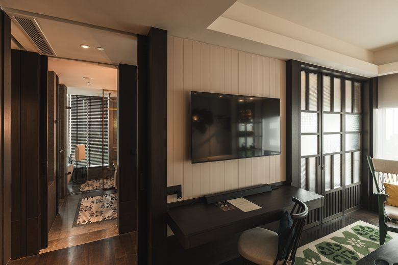 The guest rooms are planned functionally and kept in warm tones. Rattan, dark wood and textile elements give structure to the room. Individual design elements, such as traditional play objects or a typical standard piece of furniture, create a link to the local home decor. The atmosphere remains calm and concentrated. The technology was also inconspicuously integrated. Fitting to the material selection, the LS 990 range in dark aluminium lacquered was used. Beside the beds and at the desks there are universal sockets with USB-C ports. The lighting can be controlled with the KNX F-50 push-buttons.