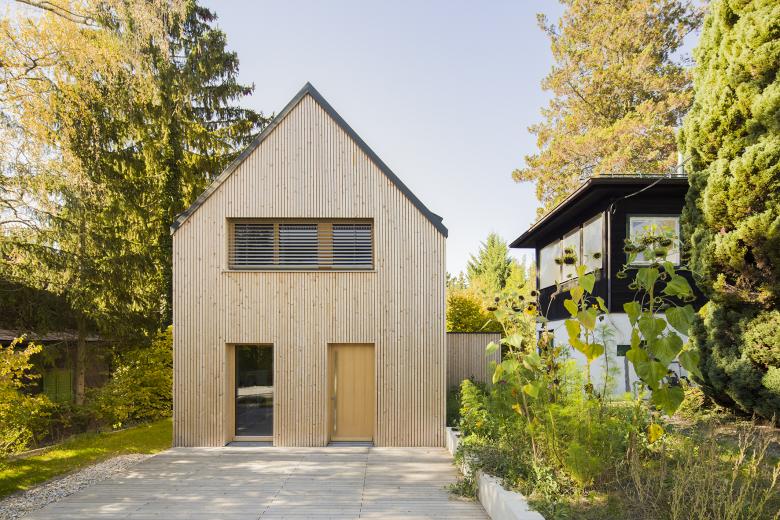 Inmitten einer grünen Einfamilienhaussiedlung in Hernals in Wien, ist ein neues Wohnhaus entstanden. Der längliche Baukörper streckt sich von Ost nach West und präsentiert sich als klassisches Gebäude mit Satteldach. Durch die klare Form positioniert er sich eigenständig auf dem Grundstück. Der schlichte Holzbau fügt sich mit seiner kompakten Kubatur in die kleinteilige Umgebungsbebauung ein. Ergänzt wird der Baukörper durch ein kleines Nebengebäude im Norden, das eine Werkstatt beherbergt.