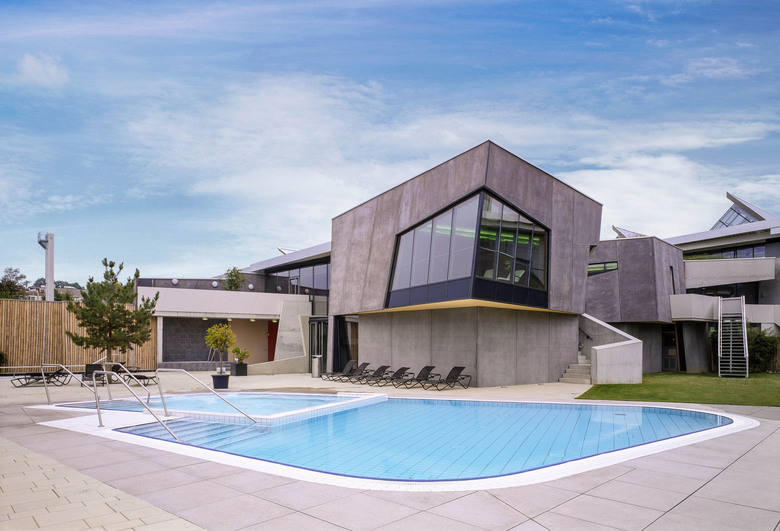 The old parts of the Fildorado were core redeveloped and only in their basic shape. The basic construction of the new parts of the building is mainly made of reinforced concrete. Only the roof of the bathing hall was made in a steel structure. The vast areas of the facades were covered in concrete-clad prefabricated parts. A total of about 275 products with different optimal blanks were processed, the construction of the new complex Fildorado shows an uniform image. To the offers of the bath to be clearly visible, got individual stations in the interior area (children's area, diving tower and rest areas), the "hot spots", an atmospheric colour recognition value. They are a guide, but also a spatial enhancement within the open pool area.