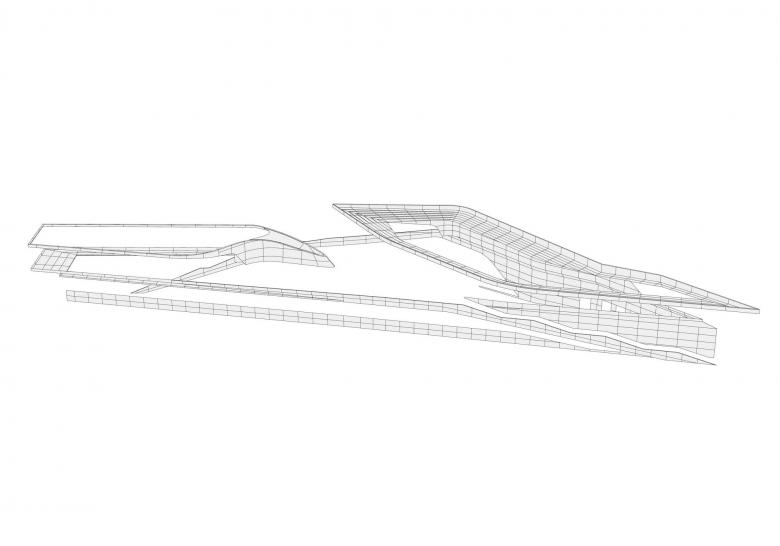 • Durch die Gliederung der Baumasse entsteht eine Differenzierung in drei verschiedene Niveaus in Analogie zur Umgebung.