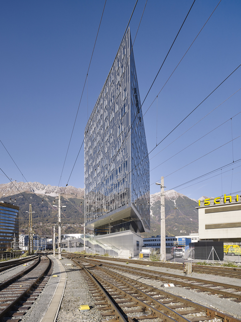 • Sowohl die Positionierung als auch die Nord - Süd Ausrichtung des Turms garantieren die für die Stadt charakteristischen Sichtbeziehungen in Richtung Mittelgebirge, Serles und Nockspitze.