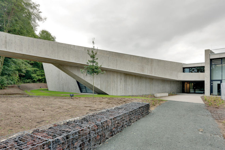 The building itself is perfectly tailored to the exhibition with its specific requirements. The various exhibition rooms in their overall appearance prepare the visitor for the subject matter that they deal with. This is achieved by simple but effective architectural means such as confinement and expanse, light and dark effects, high and low ceilings. The choice of materials was consciously restricted to sober and restrained to avoid interfering with a free interplay between changing scenographic installations. At the same time, a building has been erected that, through its design and the created atmospheres, blots out everyday life and makes a lasting impression.