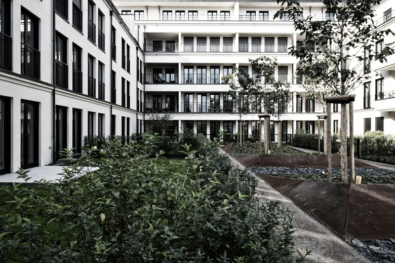 The design by landau + kindelbacher provides for 43 residential units between 65 m² and 205 m² and an underground garage. The design of the residential complex translates the form language of classical city architecture into that of the modern age. The façade design implements the urban-development idea of clear, structural edges and differentiates between a closed appearance towards the street and openness towards the inner courtyard and park. The buildings incorporate similar materials and design principles. Furthermore, specific accents are set to structure the buildings and distinguish them from one another. With its plans for ‘Belsenpark 1’, the client, PATRIZIA, hopes to win the ‘Neubau Wohngebäude’ (new residential building) award from the ‘Deutsche Gesellschaft für Nachhaltiges Bauen’ (DGNB – German Sustainable Building Council), a prize for particularly sustainable buildings.