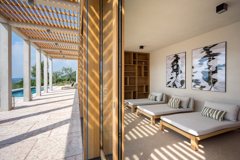 Landau + Kindelbacher were commissioned to provide the interior design of a villa in the exclusive Villa Eden Ensemble in Gardone by Lake Garda. The prominent position on the top of the mountain ridge provides a direct view of Lake Garda. The guiding principle of the interior design follows the architectural expression of pure architecture with an elegant, muted range of colours and materials in earthy shades – from soft beige to olive green, and cognac hues to strong, dark nuances. The focus is on the naturalness of the materials used and the quality of the workmanship. A welcome yellow dash of colour is a reference to the “limonaias” that are so typical on the steep slopes of Lake Garda. Since the end of the 19th Century, Gardone has been one of the most exclusive places on Lake Garda. The luxury resort “Villa Eden – Gardone”, designed by international star architects, consists of several villas, each of which is unique, plus a 6-star clubhouse with a high-quality restaurant. Its high-class furnishings and fittings and its incomparable setting beside Lake Garda, plus the most exclusive service, assure the attraction of the project. From everywhere on the site, one has a fantastic view of the lake. Both the architecture and the interior design have succeeded, with their individual designs for the luxury villas, in meeting the highest demands of the future owners.