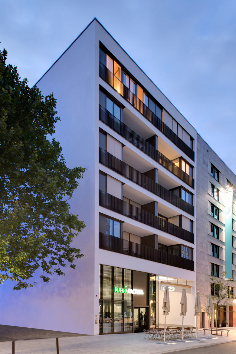 Dort wo sich lange Jahre der Glaspavillon des ersten Magazin-Ladens befand, entstanden auf sieben Ebenen erneut Flächen für Einzelhandel (Magazin, Manufactum und Brot & Butter) sowie hochwertige Wohnungen. Die Erschließung der Wohnungen erfolgt über die Passage mit Zugang im Rückgebäude. Das 1. Obergeschoss fungiert als Verteiler und erschließt über den schon im Bebauungsplan als Grünraum festgeschrieben Innenhof das Vordergebäude. Pro Etage werden zwei Wohnungen erschlossen, die zu beiden Seiten ausgerichtet unterschiedliche Ausblicke und Raumqualitäten bieten. Die räumliche Organisation des Gebäudes ermöglicht die Ausbildung von zwei unterschiedlichen Penthouses mit Blick über die Stadt.