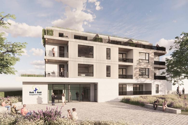 Für den Niehler Standort, der frisch fusionierten Ev. Kirchengemeinde Köln-Niehl-Riehl, haben LEPEL & LEPEL ein Gemeindezentrum mit öffentlich gefördertem Wohnungsbau in den Obergeschossen entwickelt und im Wettbewerb den 1. Preis gewonnen.